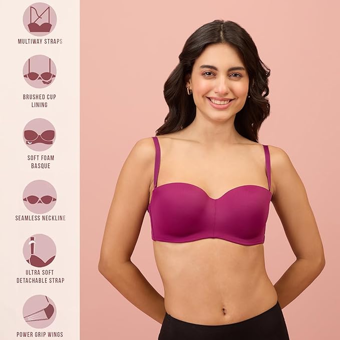 A bandeau bra is a lingerie essential for all chic bandeau and square neck tops. With detachable straps it can be easily worn under deep neck tops when you need a little lift. The soft and sleek straps are comfortable and hold everything in place while providing maximum support.