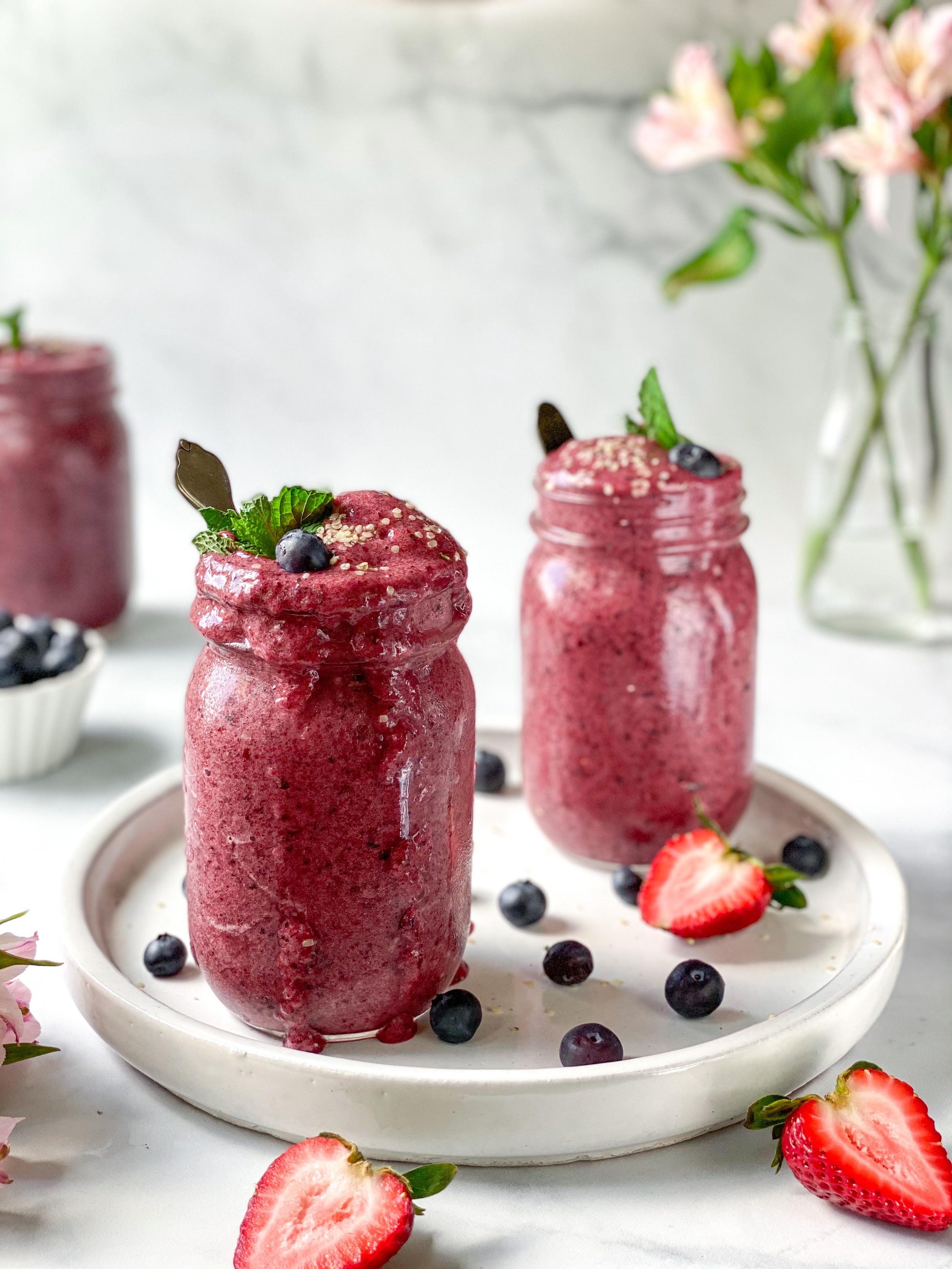 In a juicer, add cucumber, baby spinach, kale, avocado, chocolate protein powder, and blueberries. Blend the ingredients until smooth and creamy. Add almond and coconut milk and blend again. Transfer the drink to a glass and enjoy it before breakfast. The superfood smoothie will improve your digestion and gut health. This will ultimately prevent acne, keeping your skin healthy and glowing.