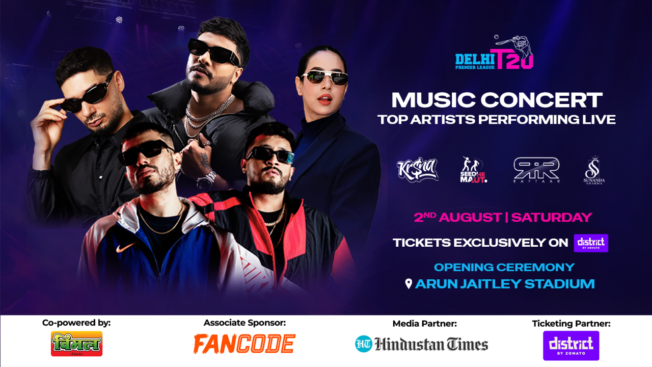 Delhi Premier League 2025 is here, and you can’t miss its grand opening ceremony. Famous artists, including Raftaar, Seedhe Maut, Sunanda Sharma, and Krsna, will give an electrifying concert to kick off the first match of the season. Grab your passes to witness a fierce battle.