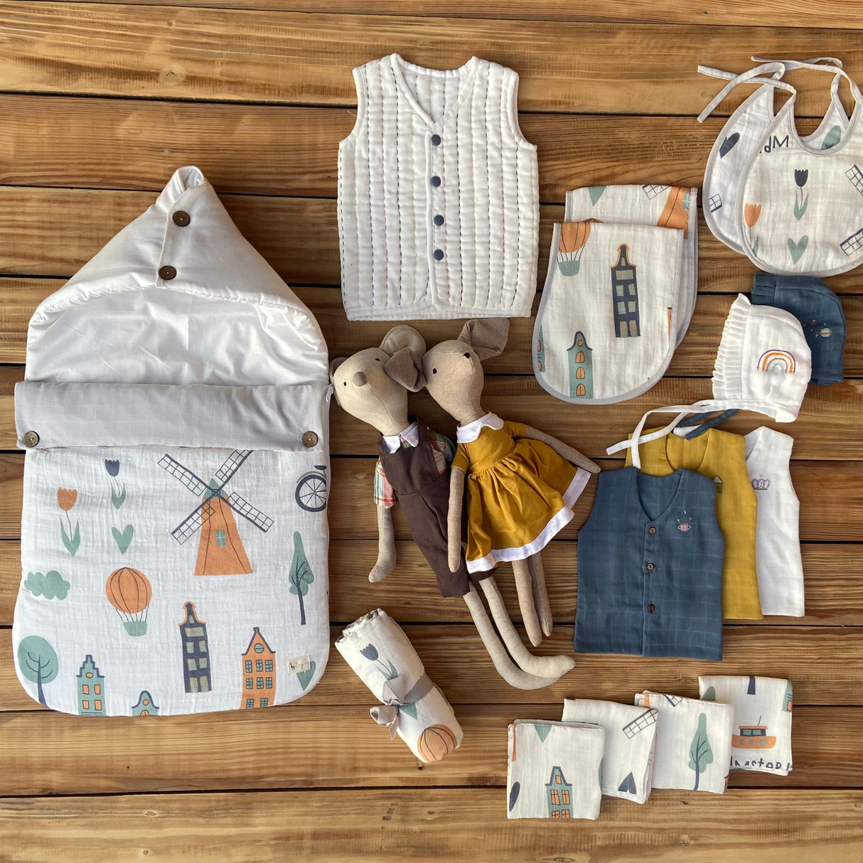 Do you prefer theme-based hospital bag kits? Shop from Zoey. Their maternity essentials feature themes like Muhly Grass, Amsterdam, and Woofles and Purrito, among others. Made from soft, breathable muslin, Zoey offers swaddles, baby carrier nests, bibs, burp cloths, cotton toys, bonnet caps, and much more.