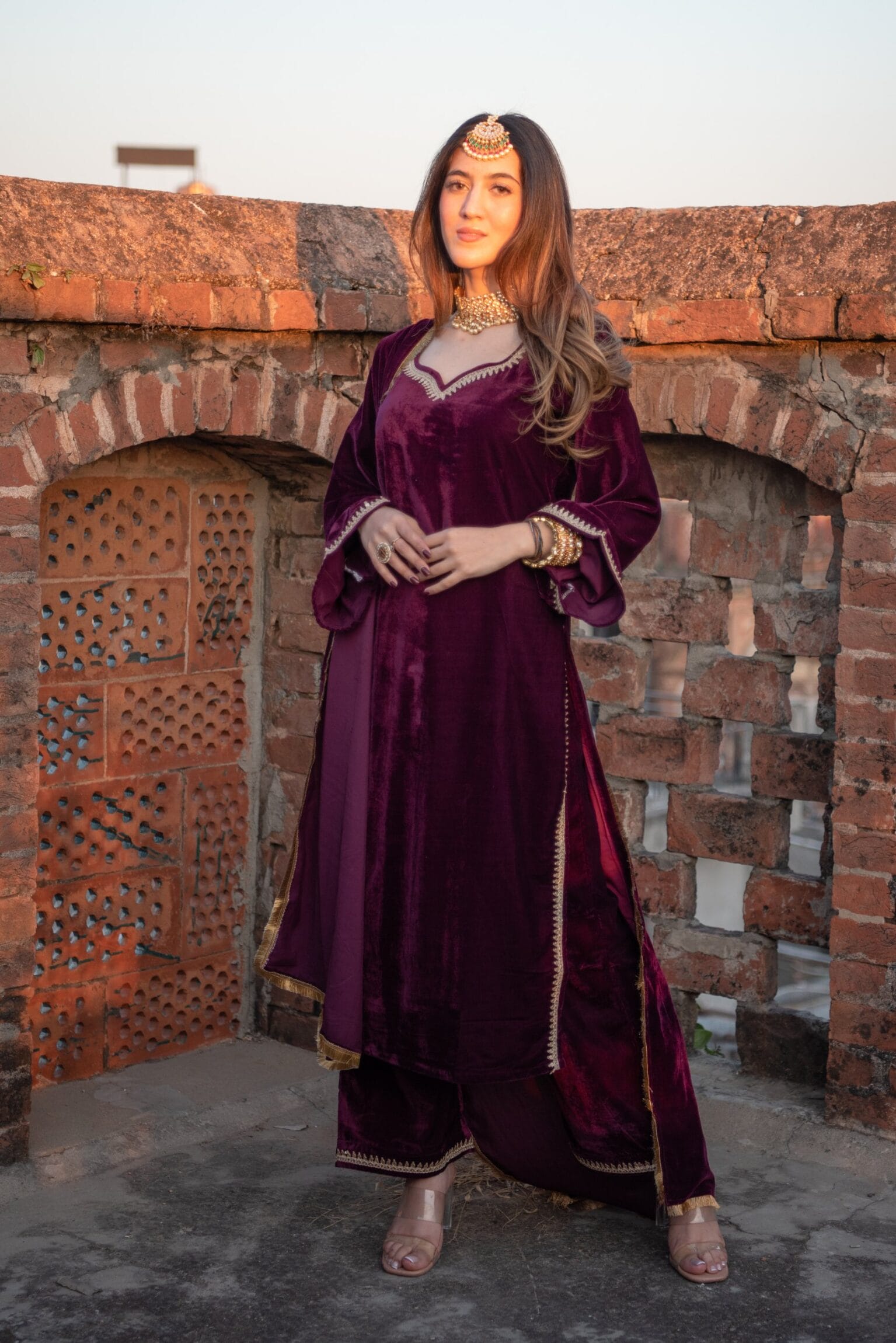 A winter ethnic wear wardrobe is incomplete without a royal ensemble of velvet suits. Dimple Design Studio’s velvet suit collection brings together rich jewel tones to make you look luxe effortlessly. Whether you’re headed for a simple get-together or attending your friend’s sangeet, these winter suits are for you. So, shop your favourite designs at discounted rates before the sale ends.