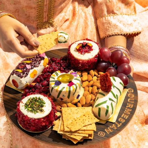 If you thought healthy party platters are bland or don’t even exist, Gourmestan is here to change your mind. Chef Shivanii Sharma specialises in gluten-free, vegan, and millet-based treats that are anything but boring. From truffle pistachios to spicy bhoot jhalokia crackers, every item in her charcuterie boards brings a gourmet twist with a healthy edge. The Indian brand also offers customisable options for charcuterie boards, so you can pre-order exactly what your festive spread needs.