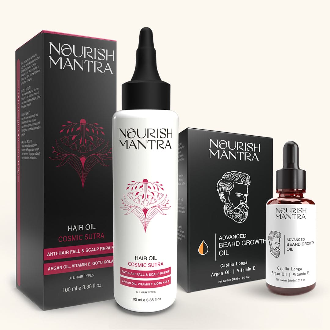 Cosmic Hair and Beard Oil Set from Nourish Mantra